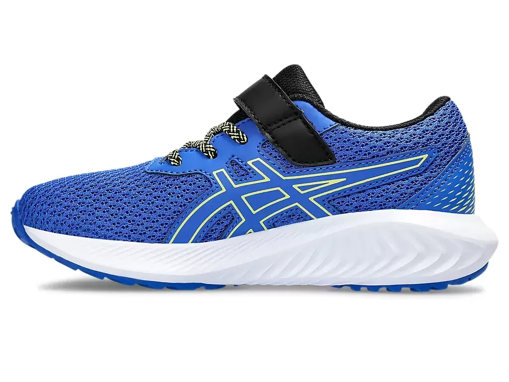 PRE-EXCITE™ 10 PRE-SCHOOL -kenkä on muotoiltu energisoivilla yksityiskohdilla. Tämä kenkä tarjoaa korkealaatuista hengittävyyttä ja siinä on vähemmän kerroksia päällisosassa, mikä vähentää ärsytystä päkiässä.