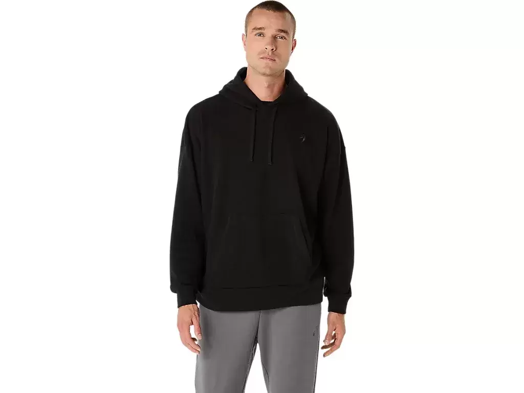 Yläosassa on myös brodeerattu logo, relax fit -siluetti ja kengurutasku keskellä.