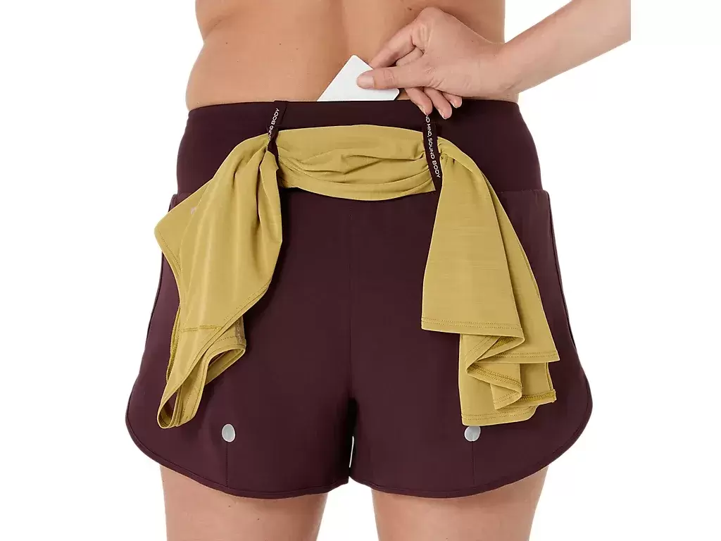Näissä shortseissa on useita taskuja, mukaan lukien: keskellä takana oleva tasku puhelimelle ja kaksi pienempää etutaskua. Lisäksi takissa on joustava lenkkijärjestelmä takin, t-paidan, pyyhkeen tai muiden juoksutarvikkeiden säilyttämiseen.