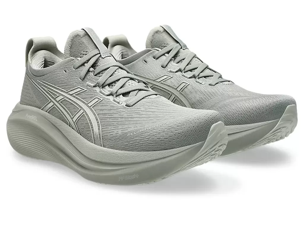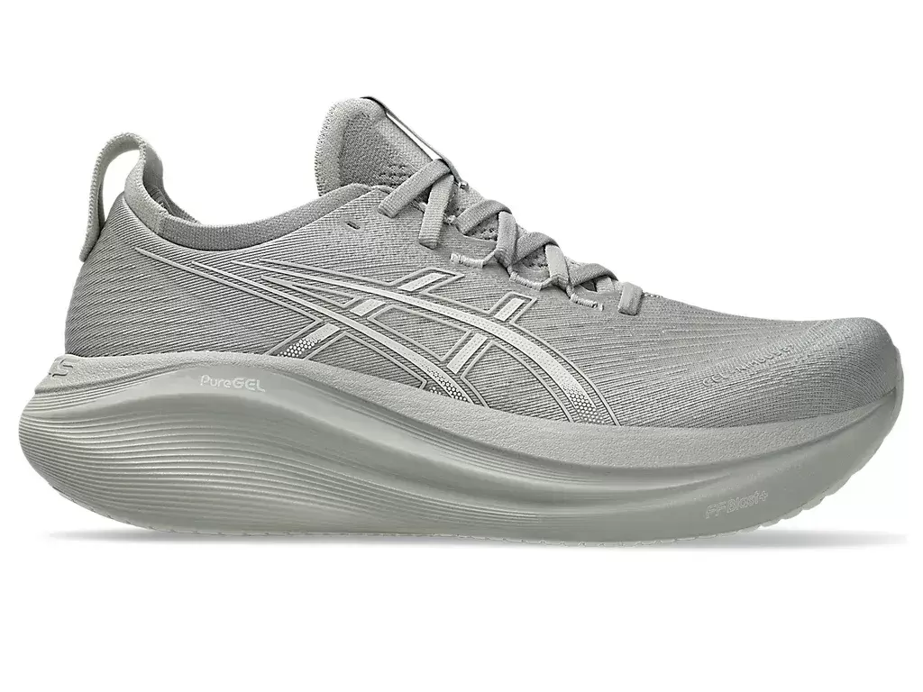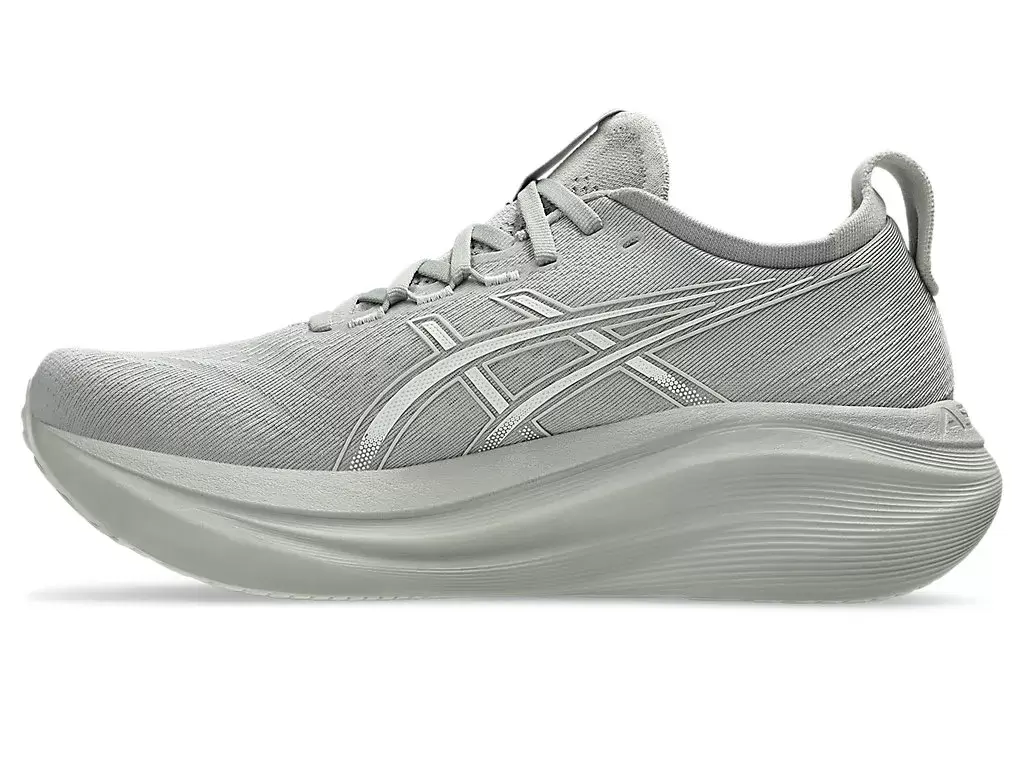 GEL-NIMBUS® 27 -kengän pehmeät iskunvaimennusominaisuudet auttavat sinua tuntemaan kuin laskeutuisit pilvien päälle. Tätä muotoilua on uudistettu pehmeämmän ja tasaisemman juoksukokemuksen luomiseksi.
