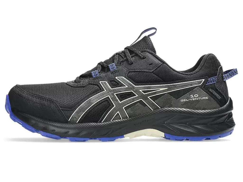 GEL-VENTURE® 10 -vedenpitävä kenkä on suunniteltu tarjoamaan hyvää iskunvaimennusta ja mukavuutta märissä olosuhteissa. Tässä versiossa on vedenpitävä päällinen, joka auttaa pitämään veden poissa kengän sisäosasta.