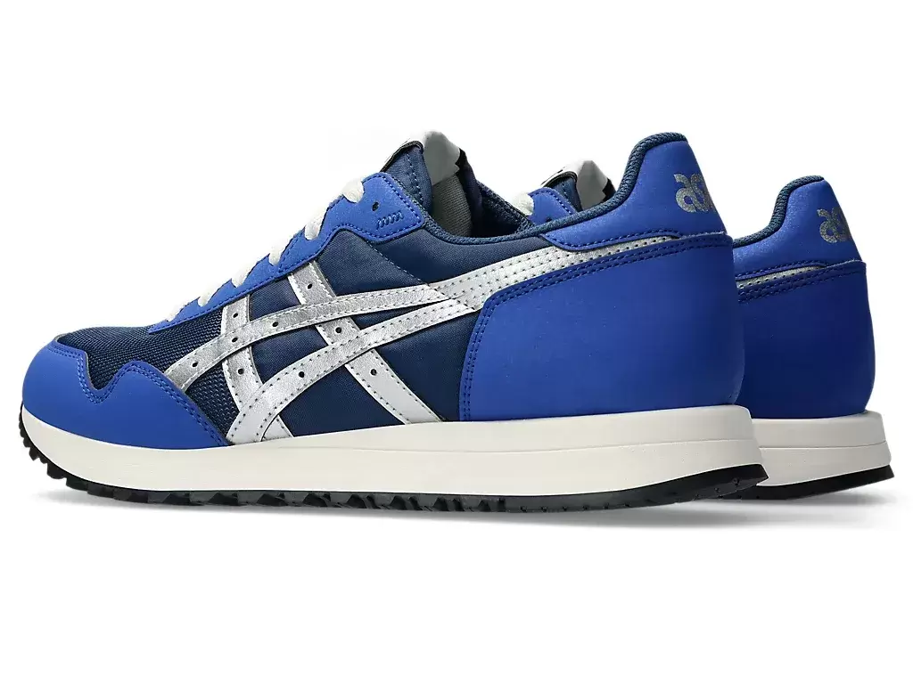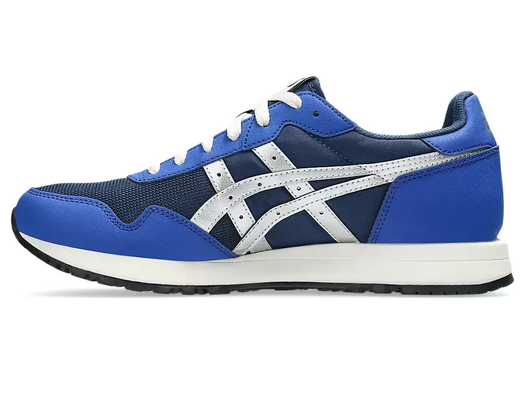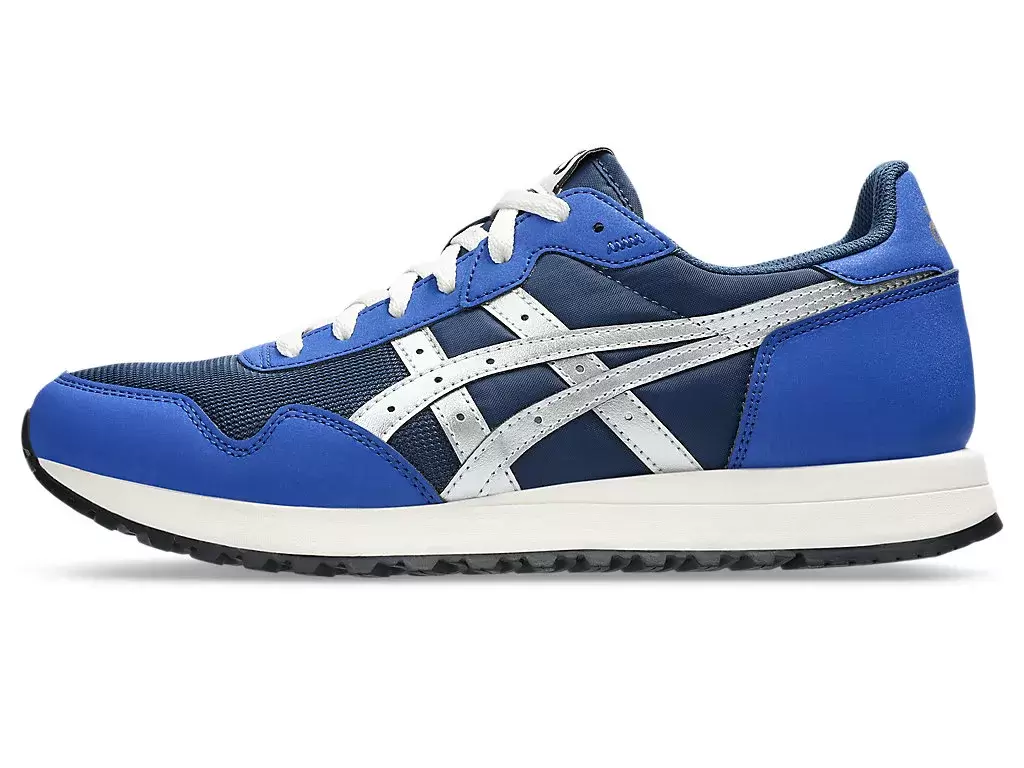 TIGER RUNNER™ II -kenkä on saanut inspiraationsa 1980-luvun lenkkeilyliikkeestä. Sen nostalginen estetiikka sisältää moderneja koristeita, kuten keinonahkaisia päällysteitä.
