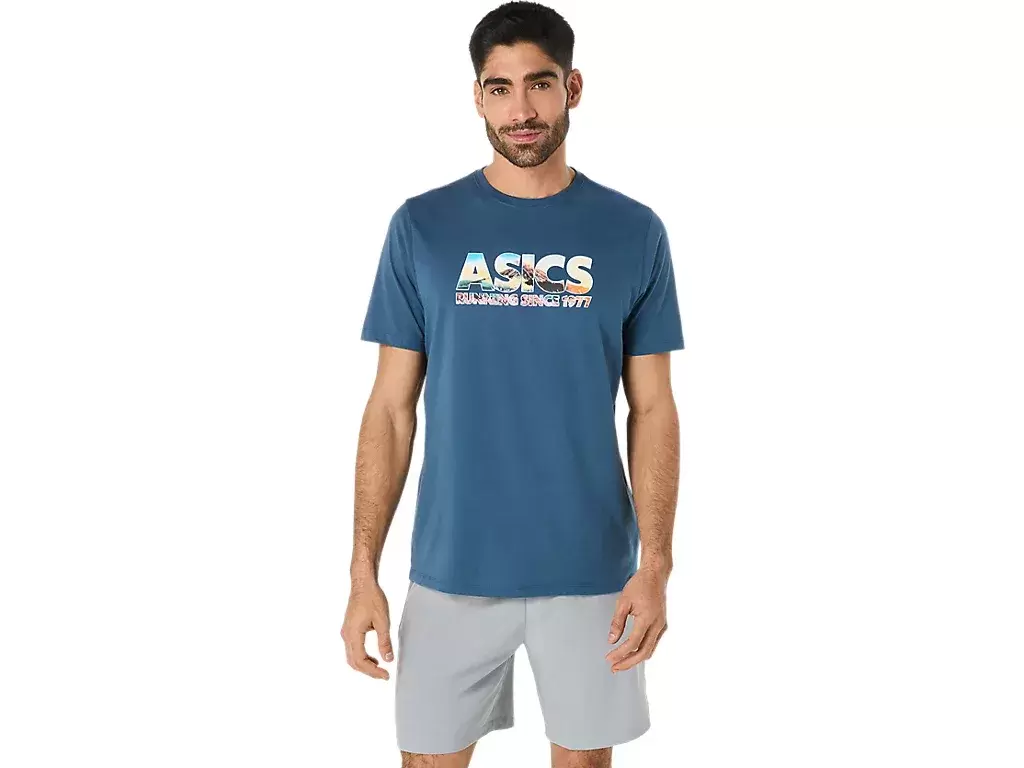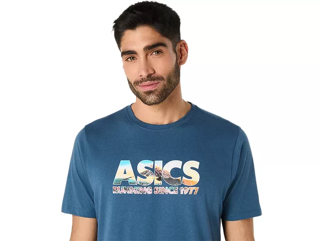 Tämä mukava neulottu lyhythihainen t-paita on saanut inspiraationsa Fuji-vuoresta. Etuosan grafiikassa on teksti ”ASICS GLOBAL RUN CLUB”, joka on kuvattu kirsikankukalla ja vuorenhuipulla.