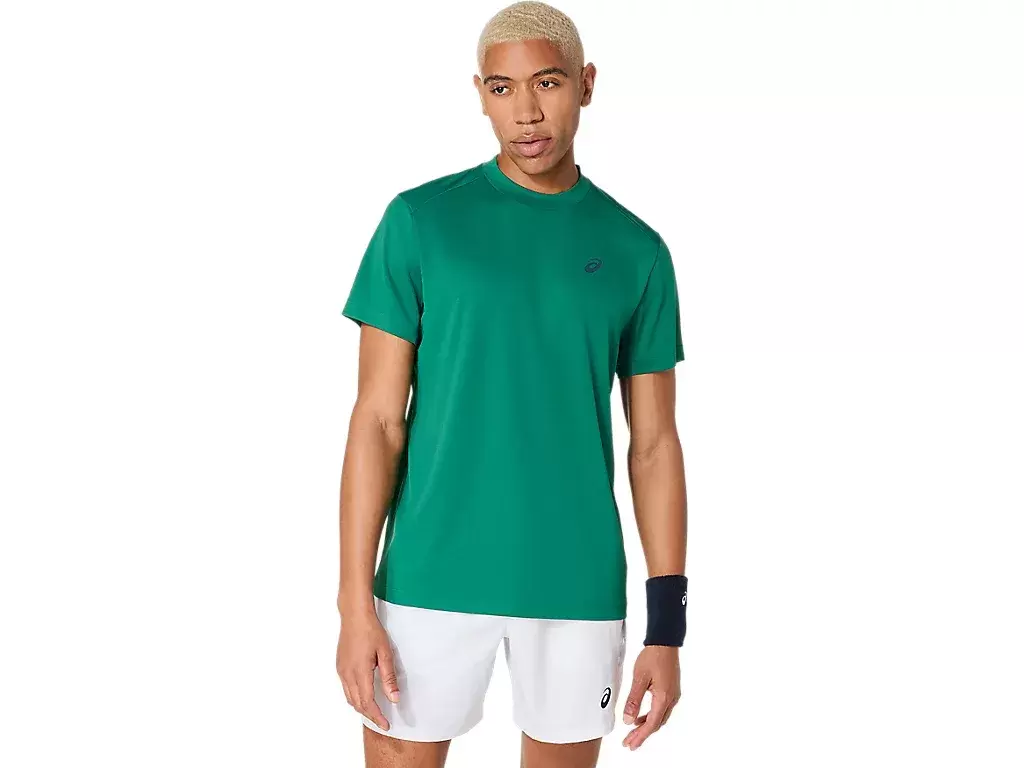 COURT SHORT SLEEVE TOP -paidassa on klassinen muotoilu, joka on ajaton ja sopii monenlaisiin otteluihin ja harjoituksiin. Se on suunniteltu klassisesta tennismateriaalista ja sen kuiva ja pehmeä kangas siirtää kosteutta mukavan tuntuiseksi.