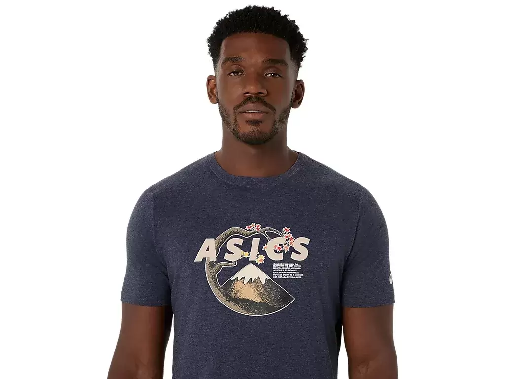 Tämä mukava lyhythihainen neulottu t-paita on saanut inspiraationsa luontokuvista. Sen rinnassa on seesteinen Fuji-vuori ja kirsikankukkakuvio.