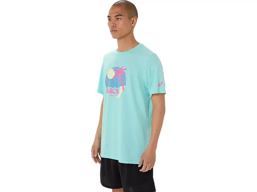 Tämä mukava neulottu lyhythihainen t-paita on saanut inspiraationsa aurinkoisilta rannoilta. Etuosan grafiikassa on erilaisia rannikkoelementtejä, joita täydentävät eloisat värit.