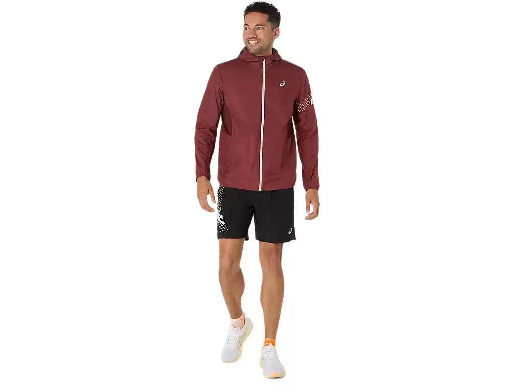 ICON JACKET on kevyt tuulitakki, jossa on korkea kaulus, jotta voit jatkaa juoksemista tuulisissa olosuhteissa. Lisäksi kudottu kangas on päällystetty vettähylkivällä pinnoitteella, joka auttaa suojaamaan kevyeltä sateelta. Siinä on myös säädettävä huppu lisäsuojaa varten ja sivuilla vetoketjulliset taskut juoksutarvikkeiden säilyttämistä varten.