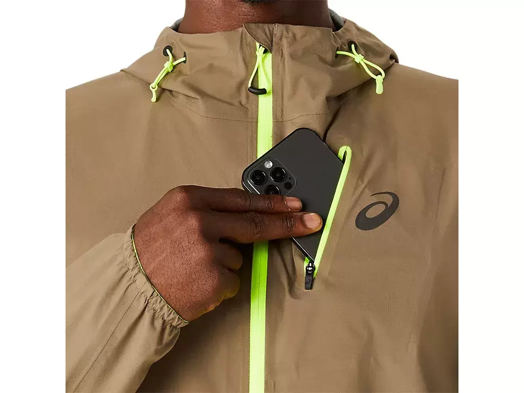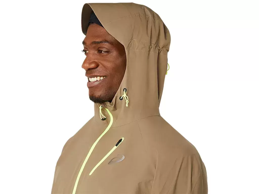 FUJITRAIL™ WATERPROOF -takki on yksi ASICS-juoksumalliston edistyneimmistä takeista. Se on edistyksellinen takki, joka on toiminnallinen rankkasateissa. Polkuurheilijoiden kanssa yhteistyössä luotu takki on testattu teknisissä vuoristo-olosuhteissa, jotta se suojautuisi sateelta ja tuulelta.