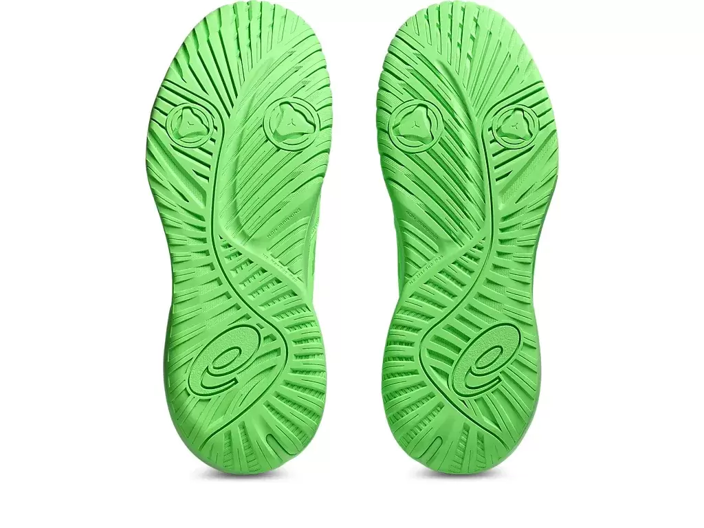 ASICSin huippuluokan kulutusta kestävä kumi kantapään alueella, joka on noin kolme kertaa kestävämpi kuin tavalliset ulkopohjan kumit.