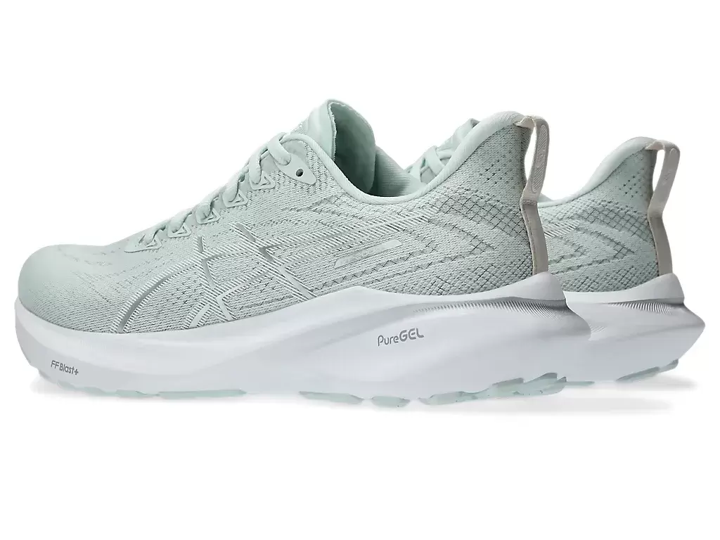 Välipohjassa on täyspitkä FF BLAST™ PLUS -pehmusteyksikkö ja PureGEL™-teknologia. Nämä ominaisuudet auttavat tarjoamaan energisemmän varpaiden irtioton ja pilvimäisen pehmeyden jalan alla.