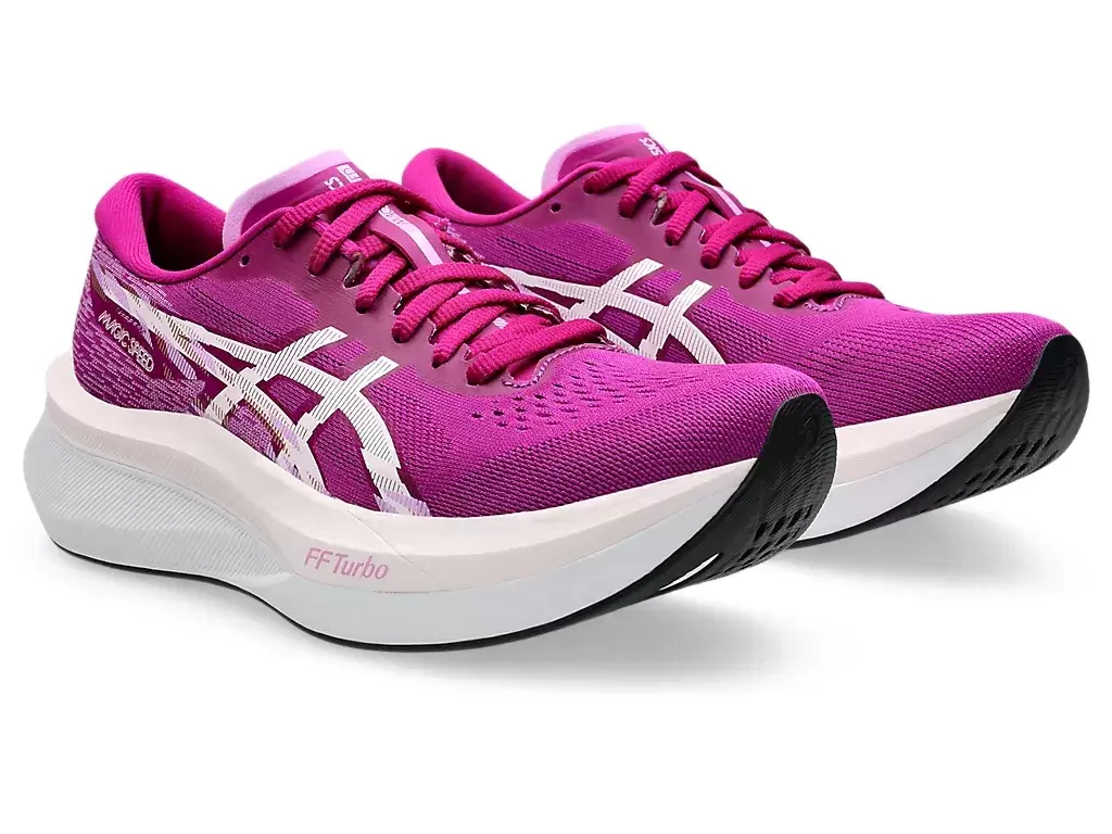 MAGIC SPEED™ 4 -kenkä on suunniteltu tukemaan kilpatavoitteitasi. Pehmeämmän iskunvaimennuksen lisäksi tämä kenkä auttaa luomaan paremman vakauden koko askeleesi ajan.