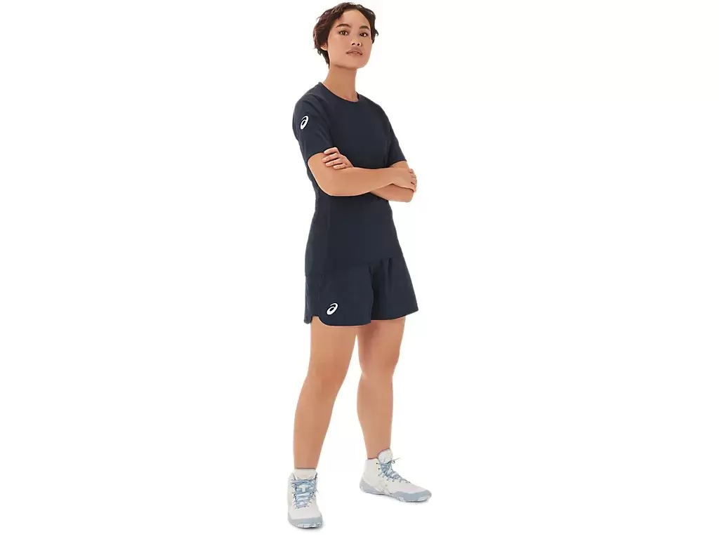 Astu matolle W 2 PIECE WRESTLING TOP -paidassa, jossa on kompressioistuvuus. Pidemmät hihat auttavat vähentämään vierimistä ja häiriötekijöitä kilpailun aikana. Polyesterikangas tarjoaa joustavuutta ja vapaata liikkuvuutta; Sivuissa verkkomainen yksityiskohta flatlock-ompeleella ja 3 tuuman alasvetolakanalla varustettu helma täyttävät määräykset.