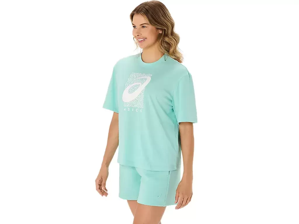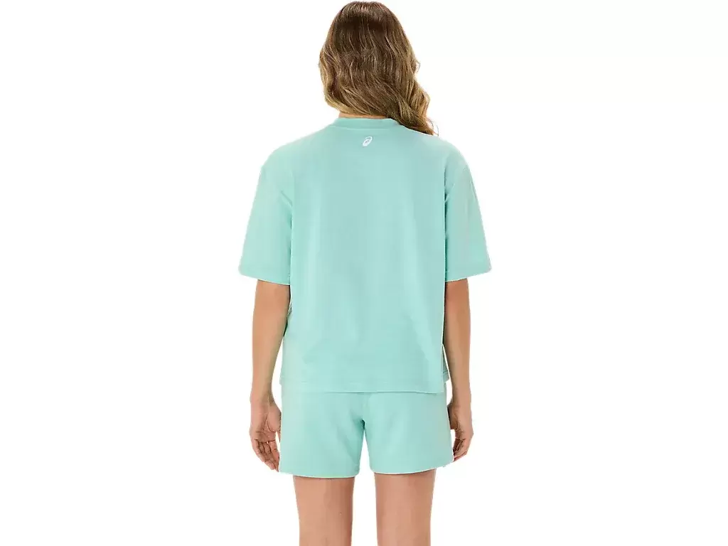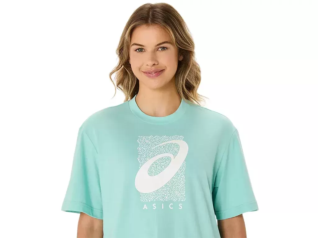 Yläosaa täydentää myös kausiluonteinen ASICS® Spiral -grafiikka, lyhyt pituus, rento istuvuus ja sivuhalkiot liikkumisen helpottamiseksi.