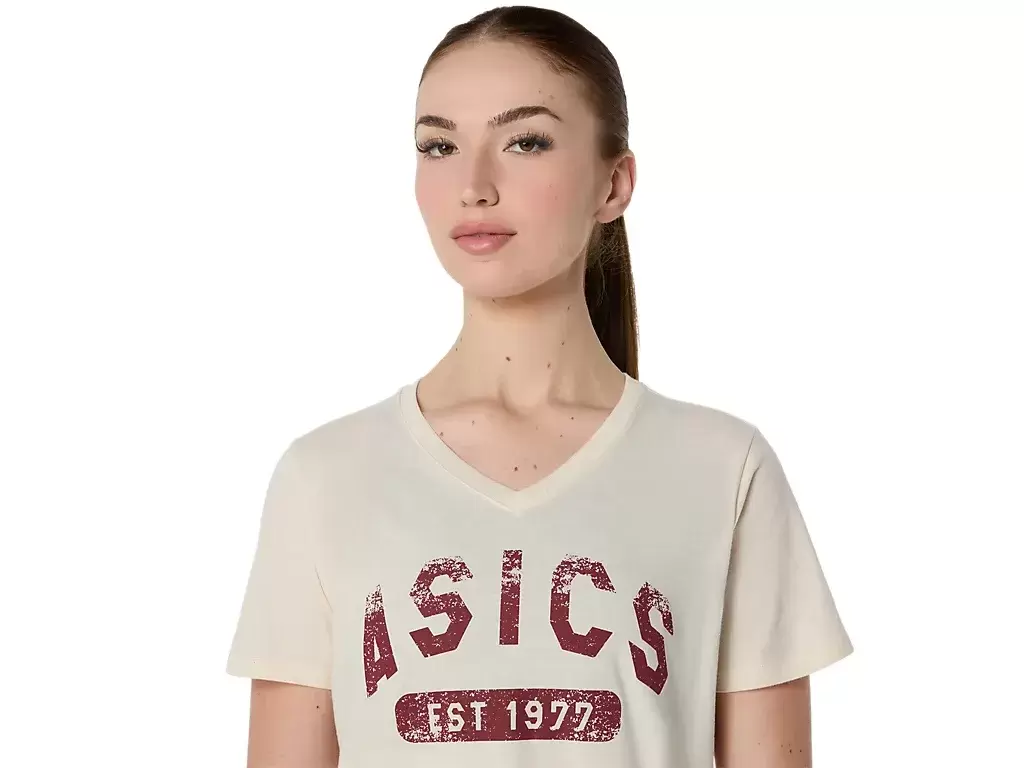 Neulotusta kankaasta valmistettu paita sopii monenlaisiin treeniohjelmiin. Lisäksi t-paidassa on retro ASICS 1977 -grafiikka etupuolella.