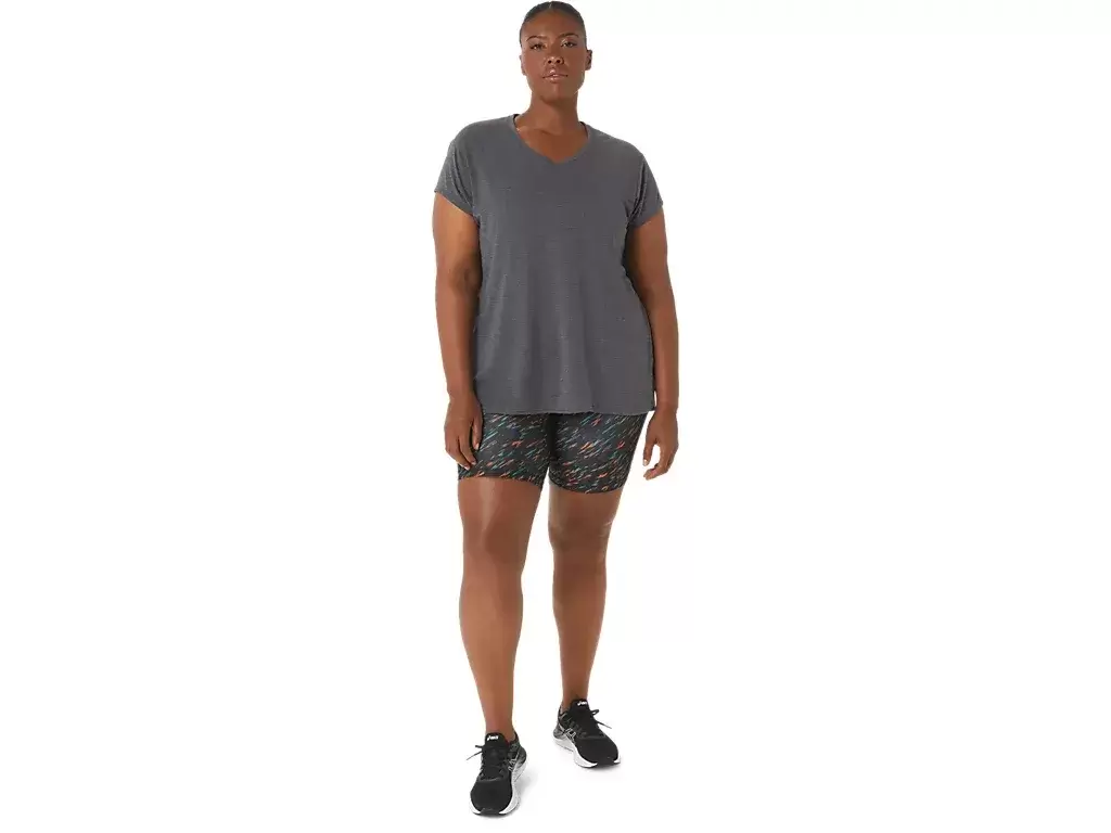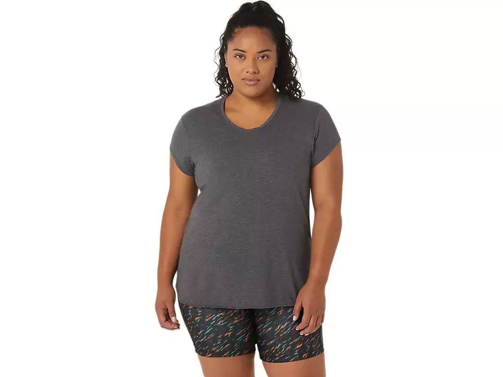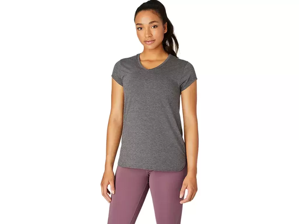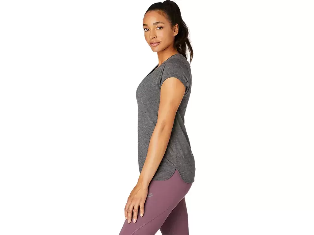 Tämä lyhythihainen V-aukkoinen paita on suunniteltu tarjoamaan tyylikkään tuntuman ihoa vasten. Siinä on mukava neulos, joka on yhdistetty eteenpäin suuntautuviin sivusaumoihin liikkumisvapauden parantamiseksi.
