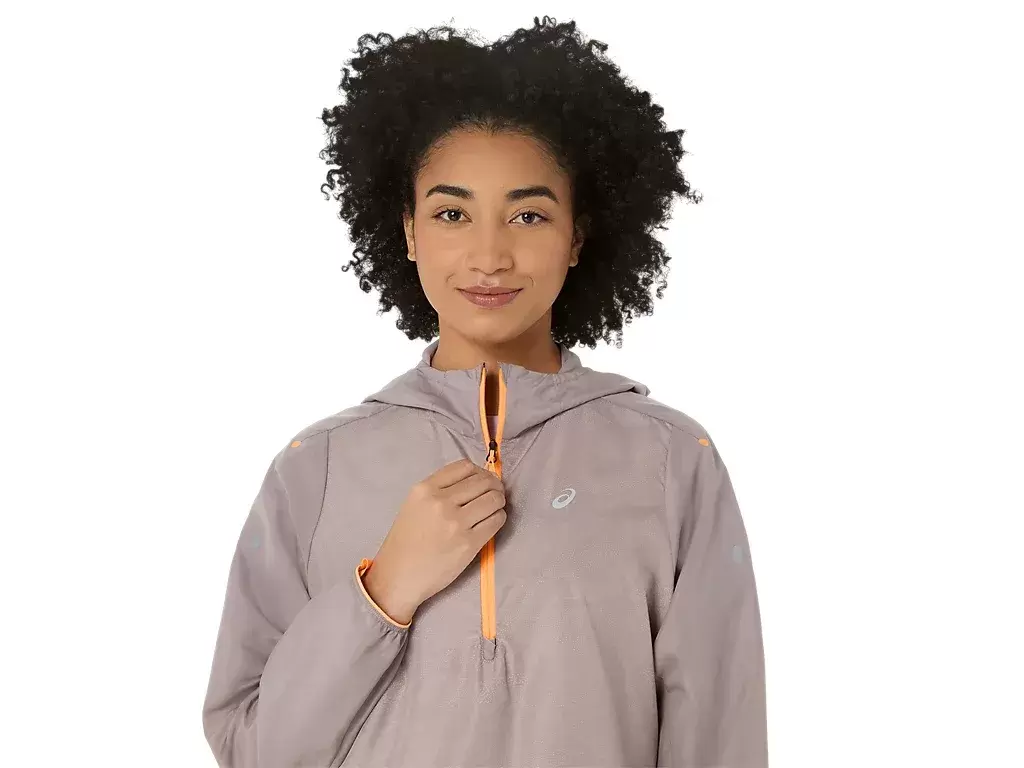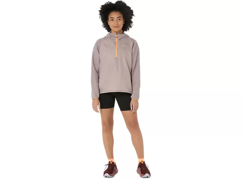 Takki on täynnä ominaisuuksia. Takataskua voi käyttää juoksutarvikkeiden säilyttämiseen ja takin pakkaamiseen sisään. Puolivetoketju ja laajennettava selkäpaneeli mahdollistavat helpon käytön juoksu- tai maastoliivin päällä.