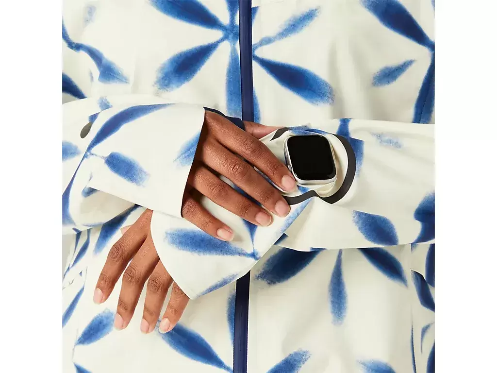METARUN® SHIBORI WATERPROOF -takki on yksi ASICS®-juoksumalliston edistyneimmistä takeista. Se on toiminnallinen säässä kuin säässä, ja sen voi helposti riisua ja pakata rintataskuun juoksun aikana.