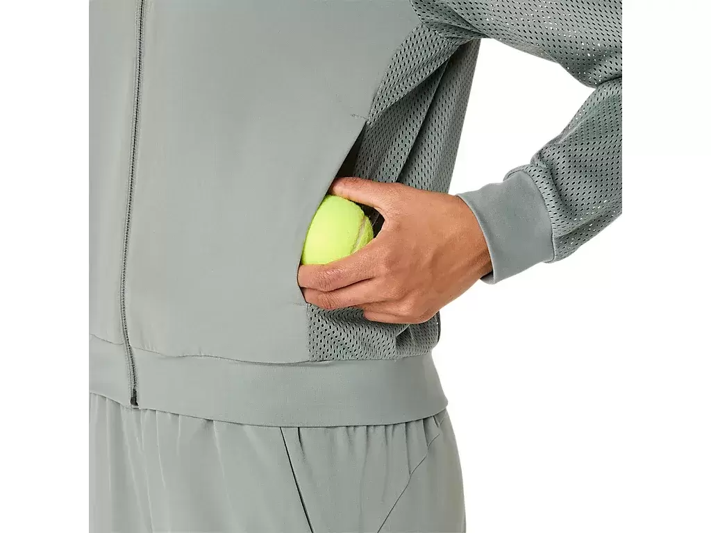 Tässä takissa on myös sivutaskut, joihin mahtuu vähintään kaksi tennispalloa ja pölyt mailasta.